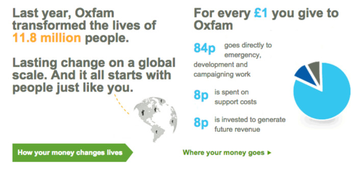 The following example from Oxfam’s donation landing page highlights these two principles in action.